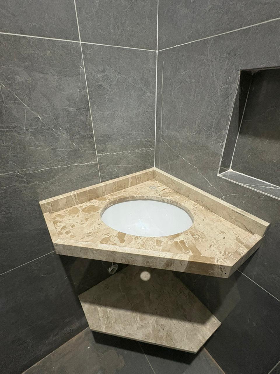 Produção artesanal de pias e cubas em pedra natural para banheiros e lavabos, unindo funcionalidade e elegância.